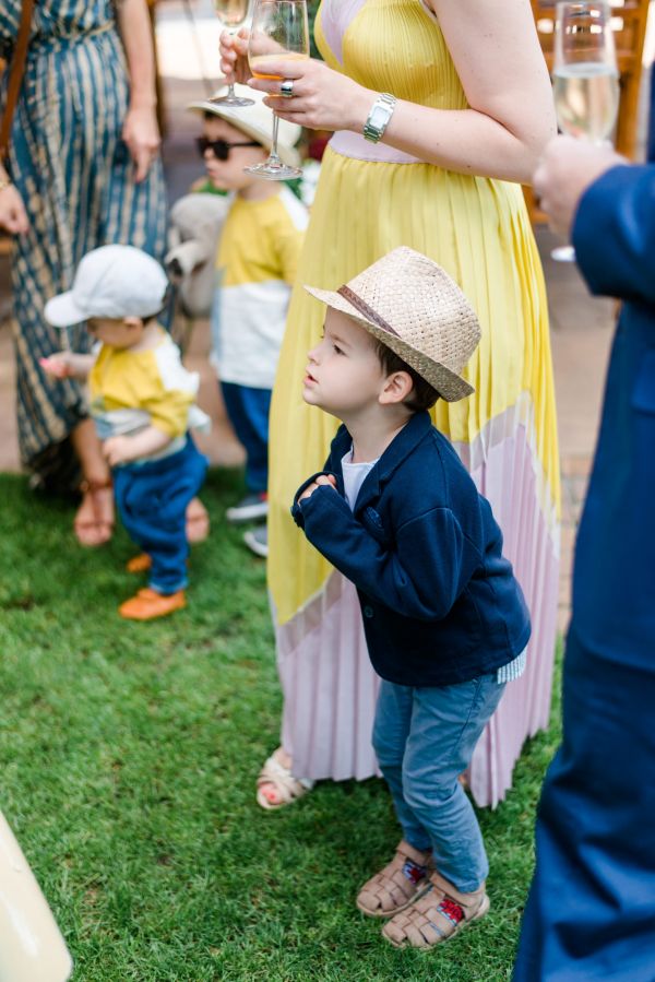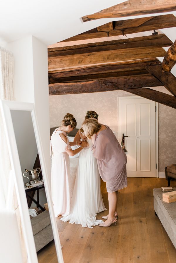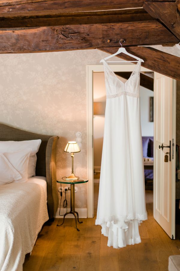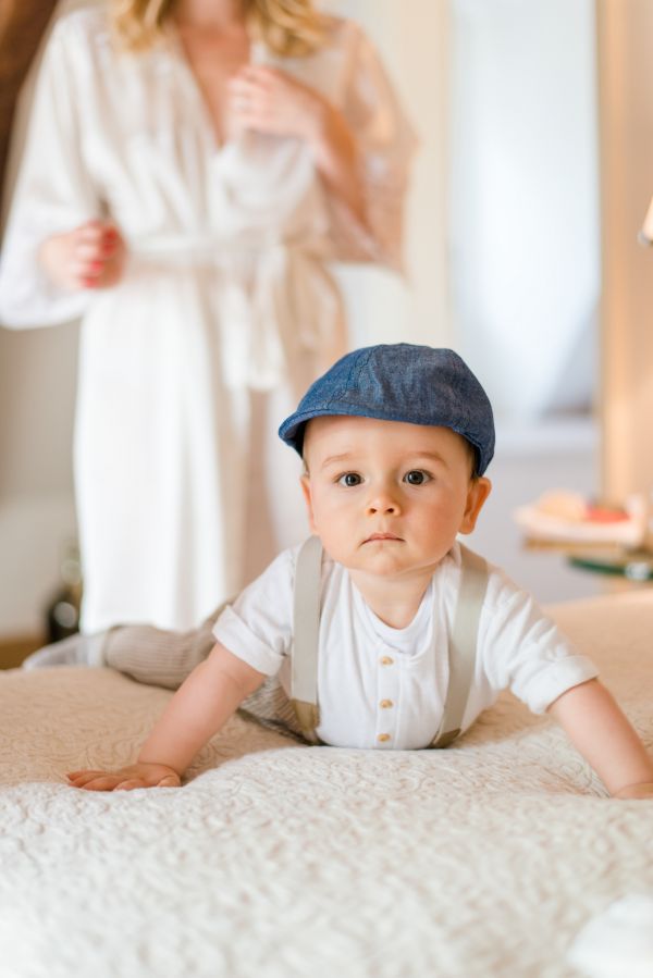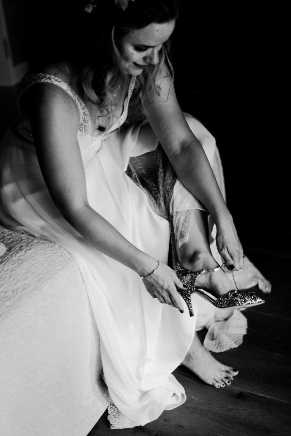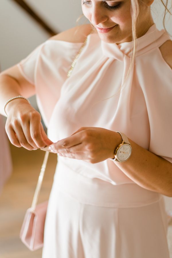 During the getting ready, I like to gather all the accessories (jewelry, shoes, flowers, …) and stage them in different ways (as you will see while scrolling down), while the bride enjoys her styling. The day started with lovely weather and along with her cute little son, her bridesmaid, her mother and her mother-in-law, Julia got dressed in a gorgeous modern and dreamy gown by Rembo Styling and Daniela did a great job with the hair & make-up!