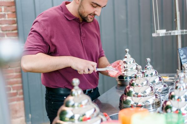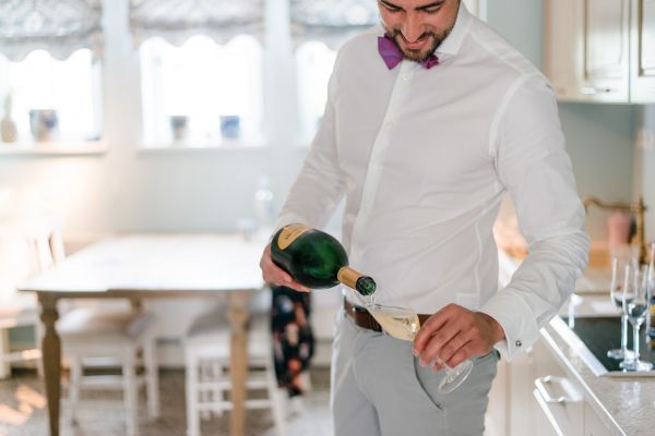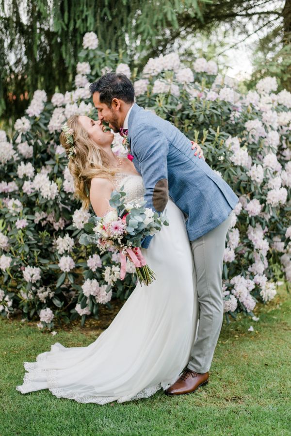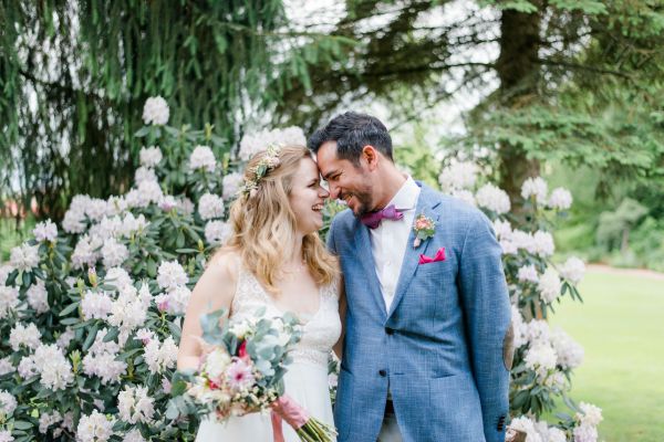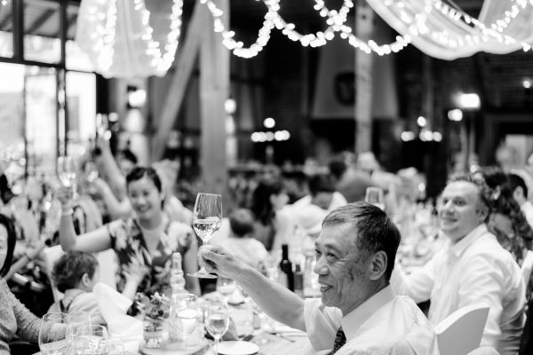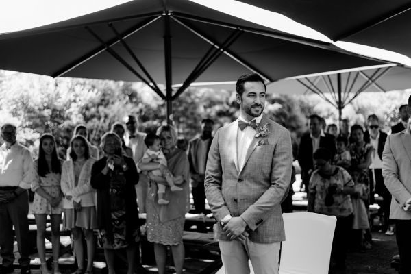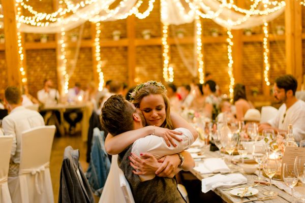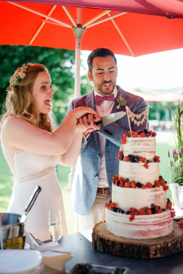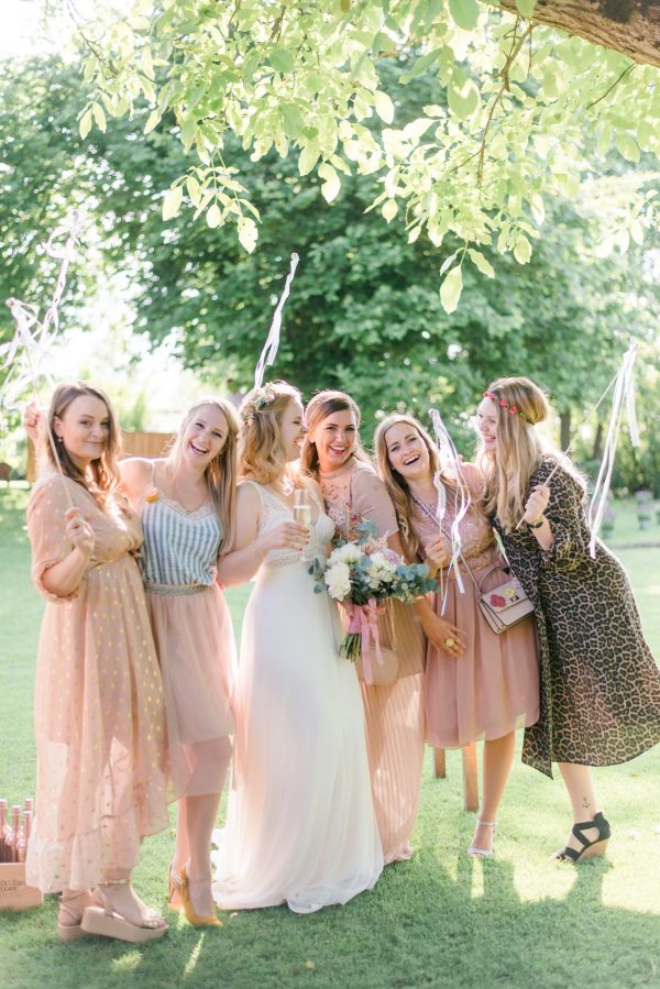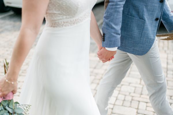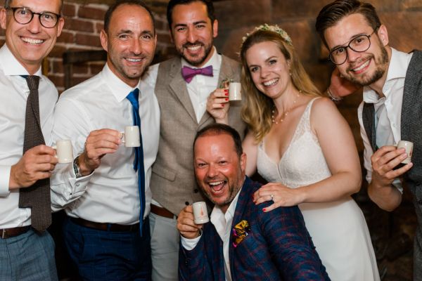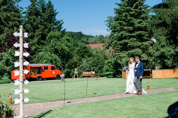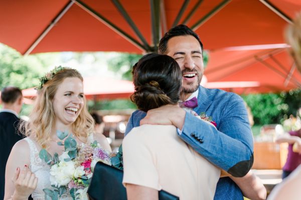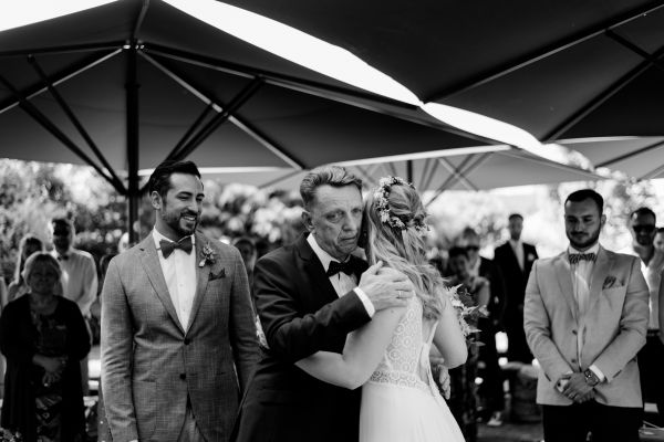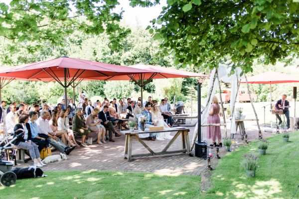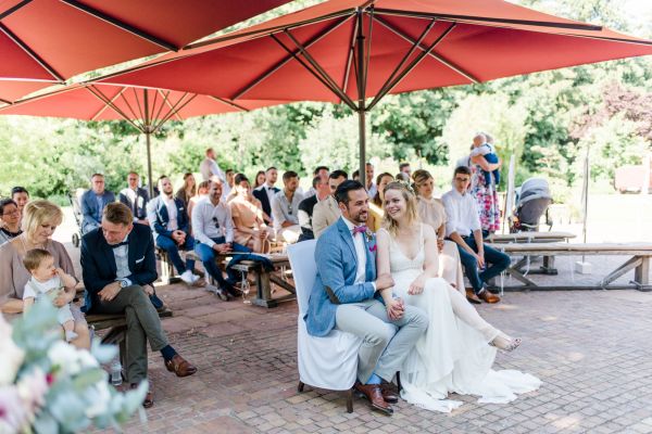 Meanwhile, Michael was out and about in the venue’s garden, preparing the final steps for the ceremony by arranging wooden tables and so on, accompanied by his best man. The free ceremony was about to be held outside by Bella, who’s just such a good and lovely soul. It was emotional, funny and overall authentic. I especially loved the personal ritual including every guest bringing a little bit of water from home (wherever they’re from) and pouring it into a bowl along with their good wishes for the bridal couple. Julia and Michael’s bridesmaid and best man then had to pour the water over the bridal couple’s hands. I had never seen this ritual before and I think its symbolism is just so beautiful and I love the fact that everyone is involved into the process!