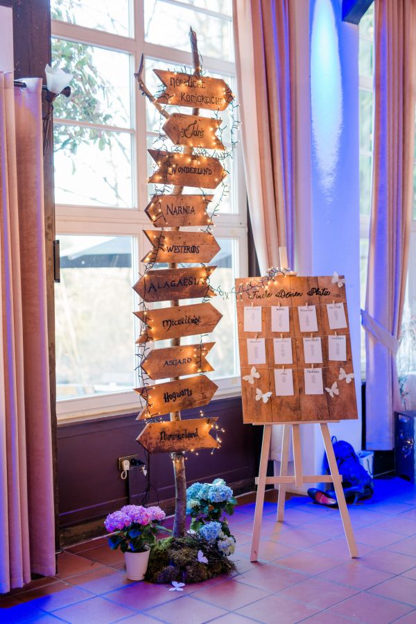 Ich finde es immer wieder wundervoll, wenn die Persönlichkeit eines Paares am Hochzeitstag hervorgehoben wird und so haben sich Marina und Chris überlegt, eine frühlinghafte Fantasy-Hochzeit zu feiern. Unter Anderem gab es im Landgasthof Saalburg Tische mit den Themen “Hogwarts”, “Mittelerde” und “Asgard”, was mein Nerd-Herz direkt schneller schlagen lies. Außerdem hat der Bräutigam ganz besondere Manschettenknöpfe getragen – Na, was meint ihr? 🙂