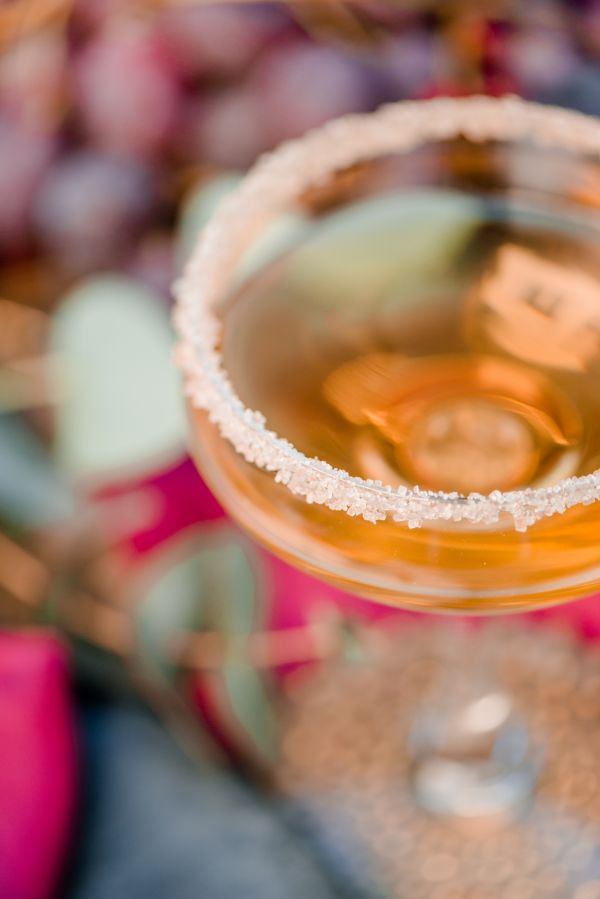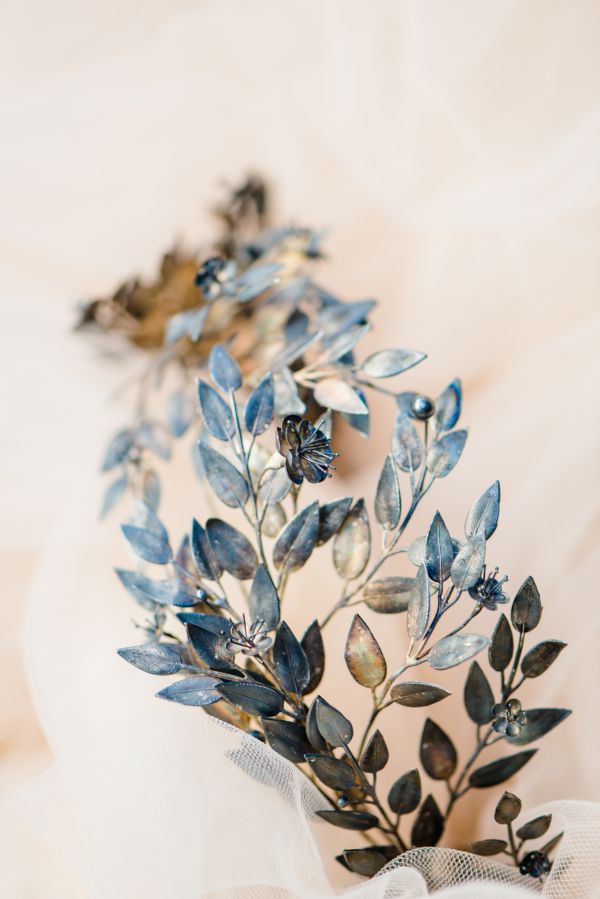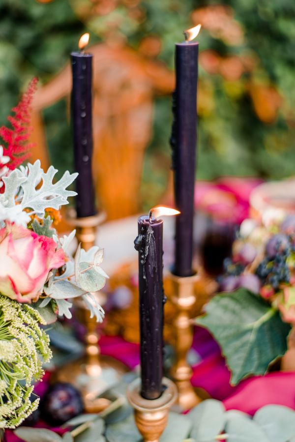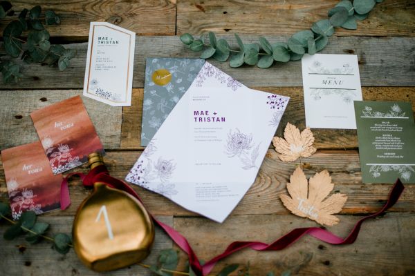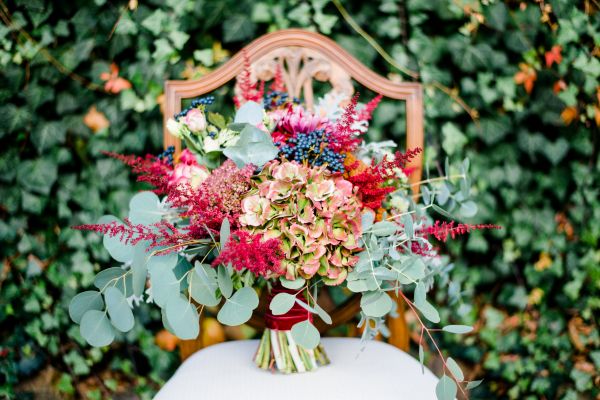 Das Ganze sollte sehr zart, feminin und märchenhaft sein – eingebettet in Töne von Weinrot, Pflaume, Gold und weichem Eukalyptus-Grün.