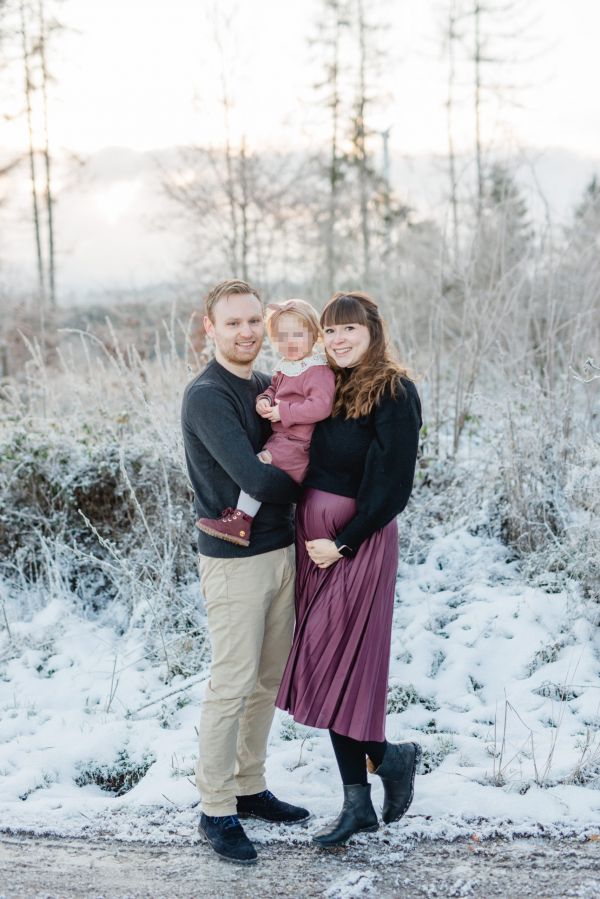 When it’s icy cold outside and the trees are clad in shimmering silver, the forest becomes magical! And even more so, I had the honour of capturing the special bond between a growing family – a former bridal couple of mine is expecting their second child! Isn’t this soon-to-be big sister lovely? She did such a good job 🙂