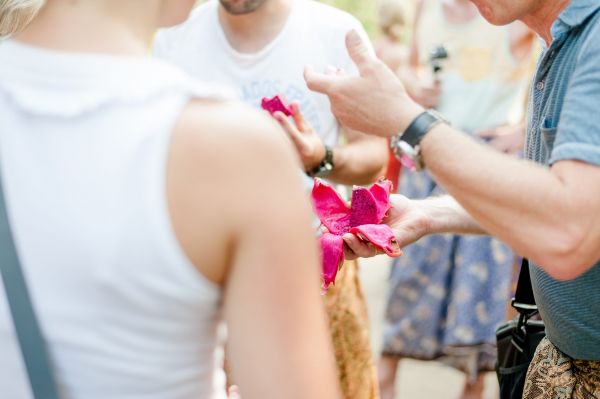 You wake up and you don’t have to pull the curtain to have a look whether the sun is shining (As a photographer I’m ALWAYS checking the weather forecast!). It always is. You leave the house or the hotel room and there are frangipani blossoms everywhere on the ground. You step into the street and smell rice and joss sticks. You see many colours, scooters (sometimes with a whole family riding it) and offerings for the gods all around.