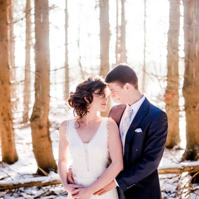 In the silence of the forest. Everything is covered with snow. Magically, the golden winter sun shines through the branches of the firs. Snowflakes are falling down from the trees, like golden rain. Colours of silver, white, rosé and blueish serenity, along with vintage furniture. And in between this beautiful scenery, a winter bride & groom. Falling in love with each other, over and over again…