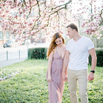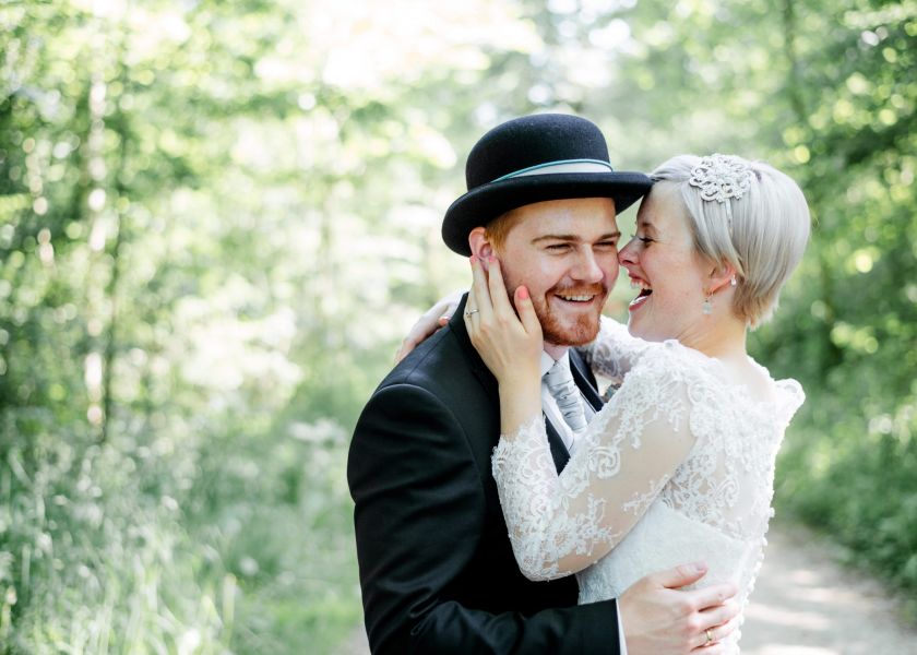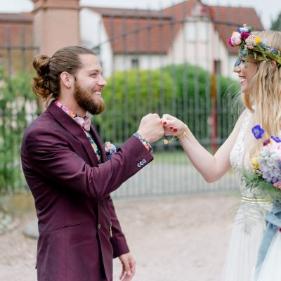 A beautiful sunny day in Eltville. The mild climate of the Rhineland. Vineyards, beginning to grow. A rustic venue with stone walls. Selfmade decorations. Flower crowns all around. And of course a happy, smiling bridal couple. What else do you need to have an awesome summer wedding?