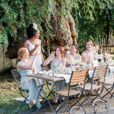 Usually, there’s ‘bobo’ vs. ‘fine art’ – rustic and relaxed vs. elegant and timeless; moody vs. bright. But why not combine these features? With this wedding inspiration shoot we, a team of all-female wedding vendors, tried to incorporate textures, softness in colour and happiness and brightness in editing to create a beautiful setting at Landhaus Hui Wäller.