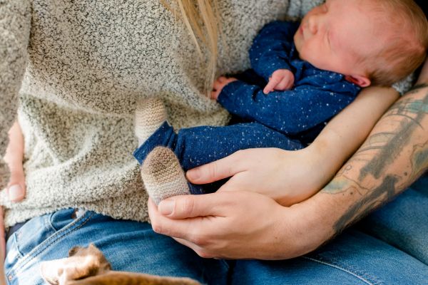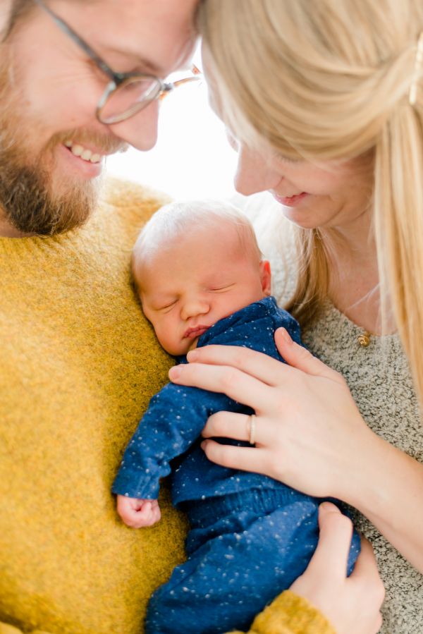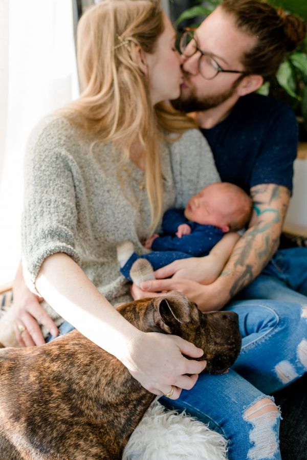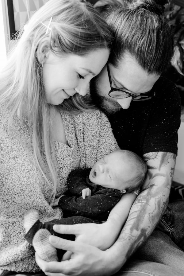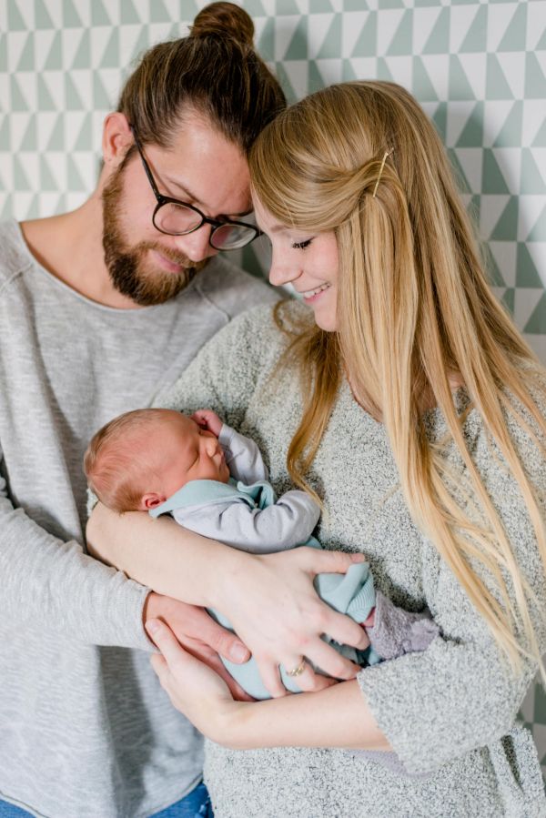 A home story is a great way to take newborn portraits because the session is not dependent on the weather or the temperature. Another reason why I like to do this is that, as a new family, you feel (literally) at home, comfortable and save – especially when it comes to newborn babies, because you don’t want to put them through too much stress. You can just be yourselves and cuddle while enjoying this exciting first time as a family.