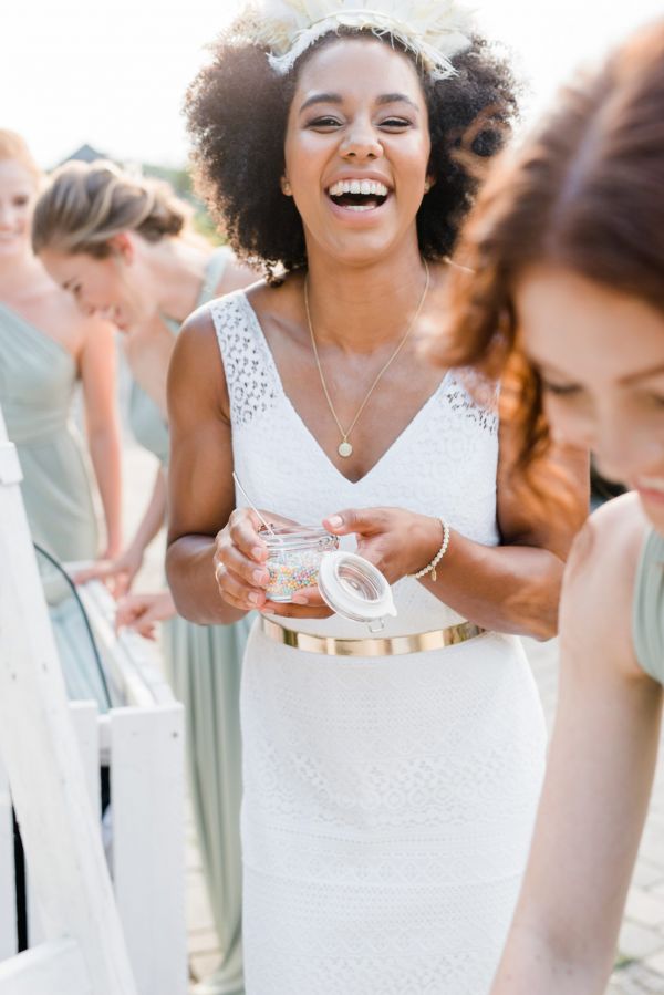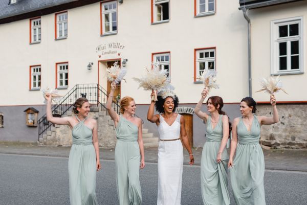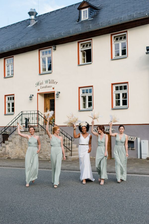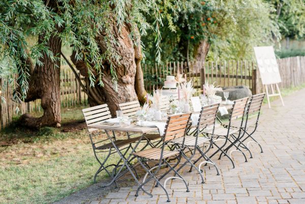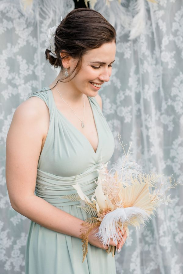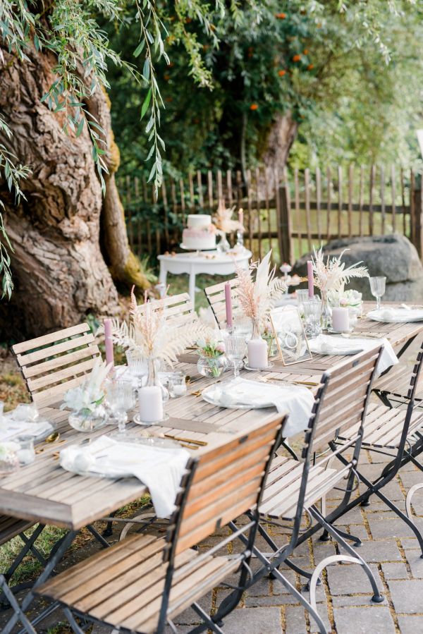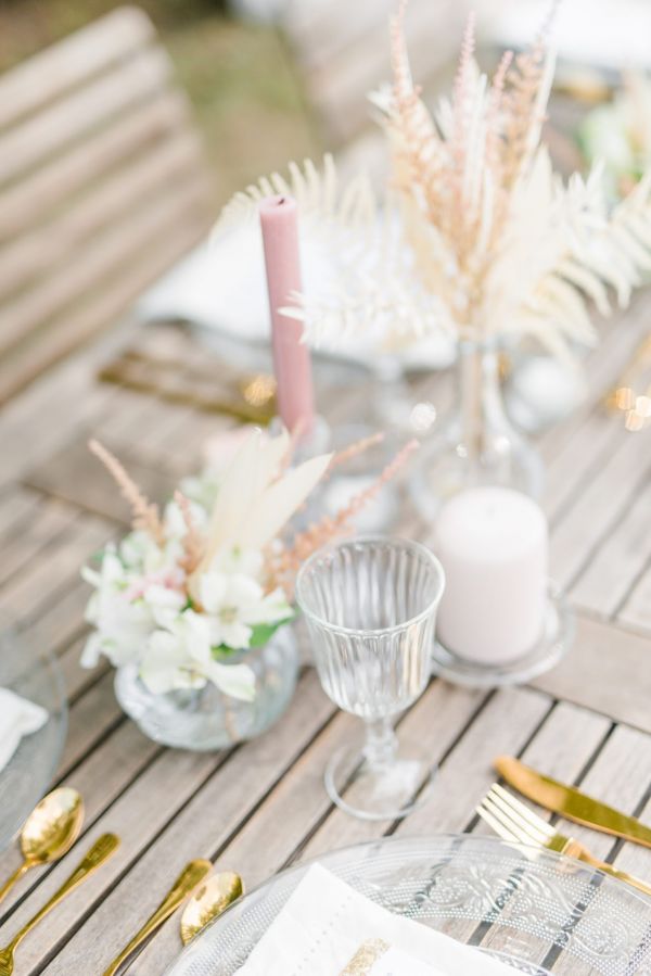 Usually, there’s ‘bobo’ vs. ‘fine art’ – rustic and relaxed vs. elegant and timeless; moody vs. bright. But why not combine these features? With this wedding inspiration shoot we, a team of all-female wedding vendors, tried to incorporate textures, softness in colour and happiness and brightness in editing to create a beautiful summerly setting at Landhaus Hui Wäller.