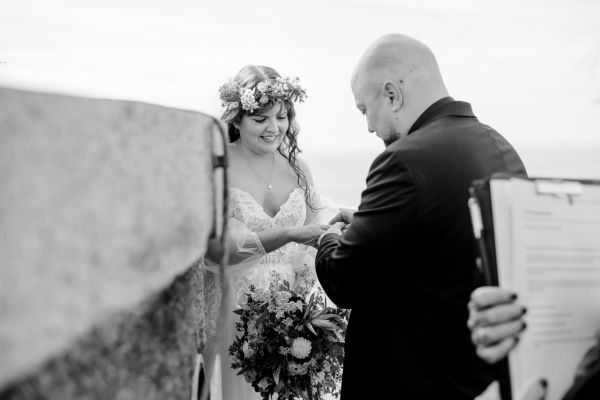 After tying the knot, they were greated with a rain of flower petals by their loved ones and enjoyed a nice little slice of cake and toasted to their love with a sip of champagne right next to the lighthouse before heading to the beach with me for a quick couple session – what a treat!