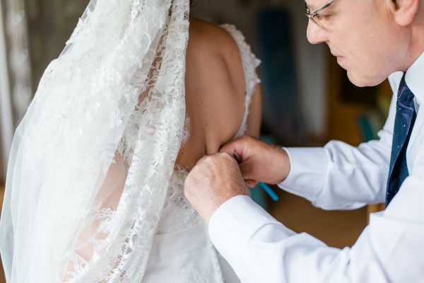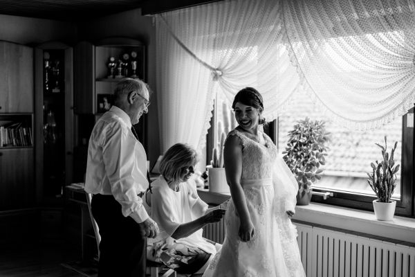 Remembering the wedding of Lisa and Finn, I think of a beautiful summer day in Bad Homburg. First, the bride got ready at her parents‘ and it was so sweet and special seeing her get helped into her gown by both her mother and father. It’s these moments that I truly appreciate while working as a wedding photographer.