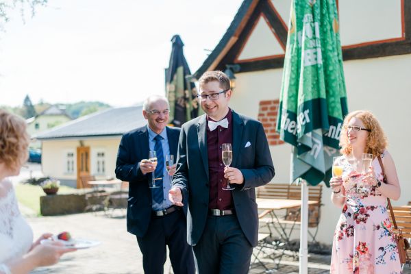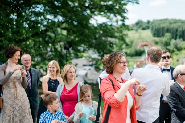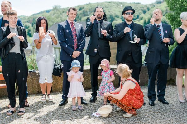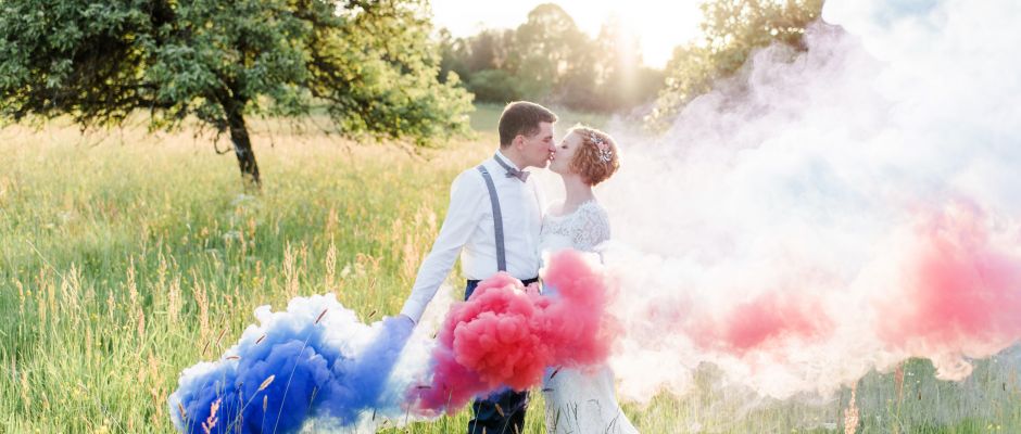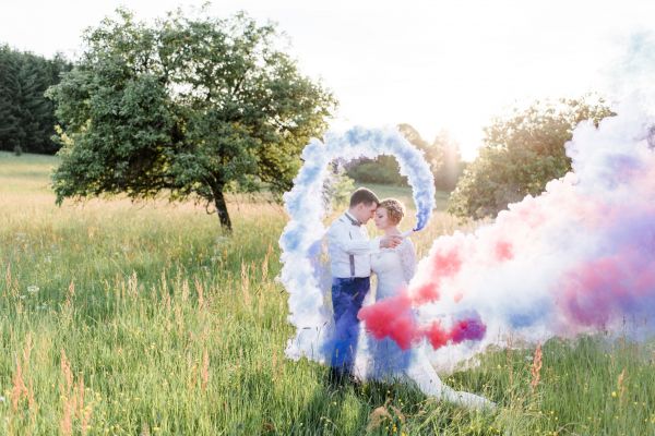 Anna und Stefan enjoyed a quick first look in the garden before heading to church and celebrated the rest of the day at a barn. A few highlights of the day (for me) were: The relaxed atmosphere, those little brains for decoration (aren’t they cute?!) and the colourful fog during the couple session.