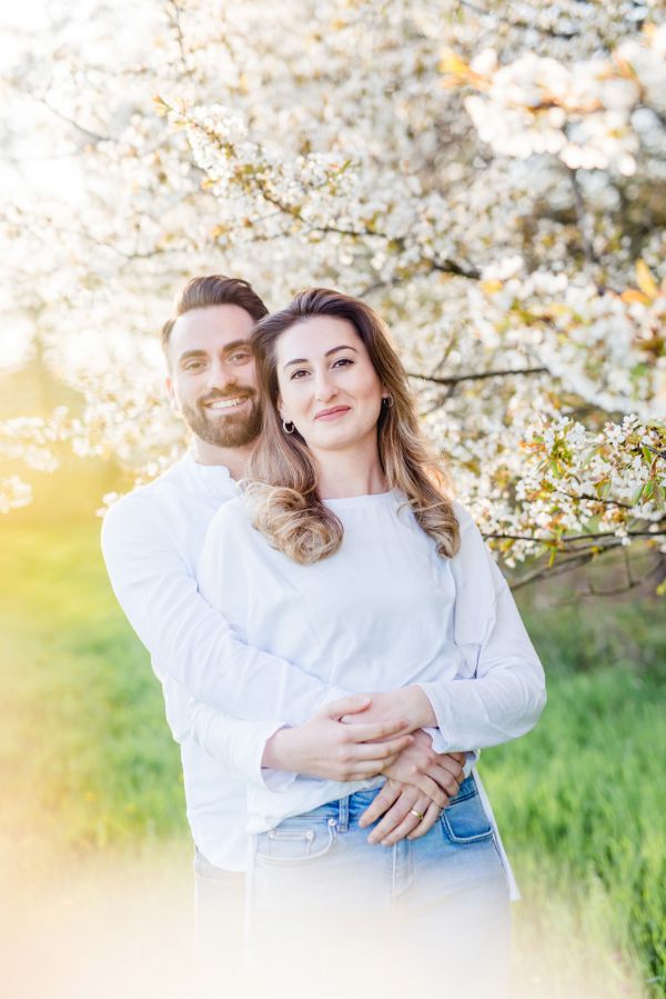 Originally, Dogan wanted to surprise his wife Nurcan with a secret couple shoot one day before her birthday, but unfortunately she guessed what was going to happen before they arrived at the beautiful location with white cherry blossoms. Nevertheless,  she was so happy and despite the cold temperatures we had a lovely time and it was so great seeing those two again 🙂