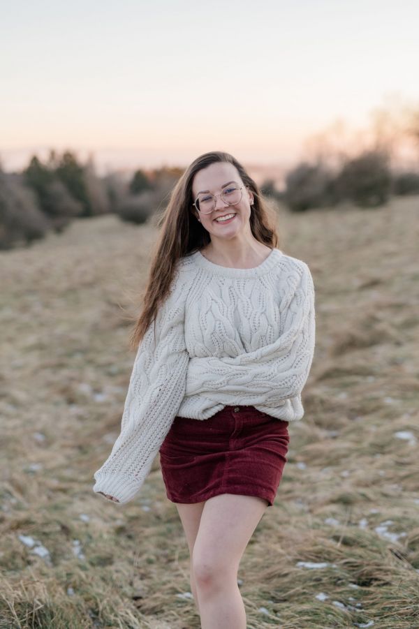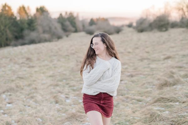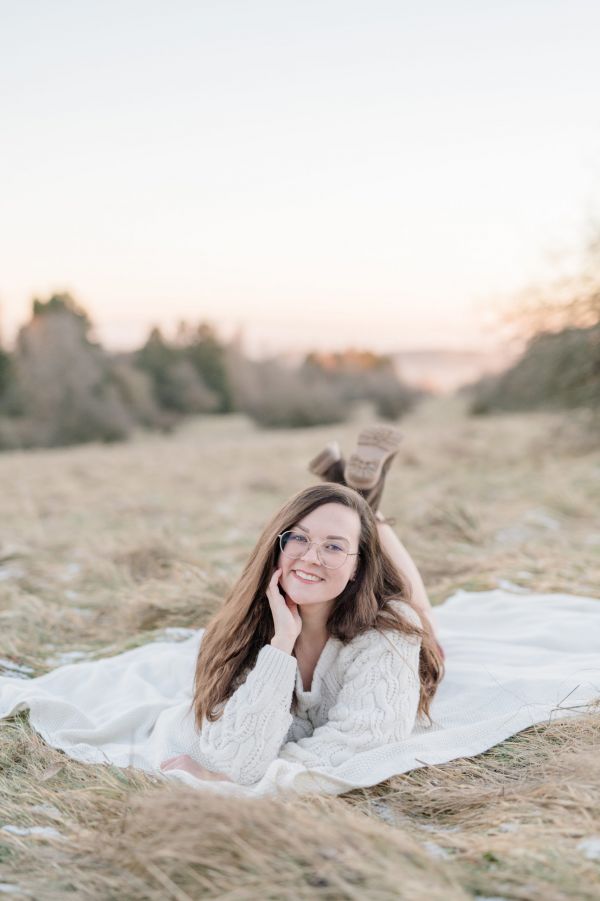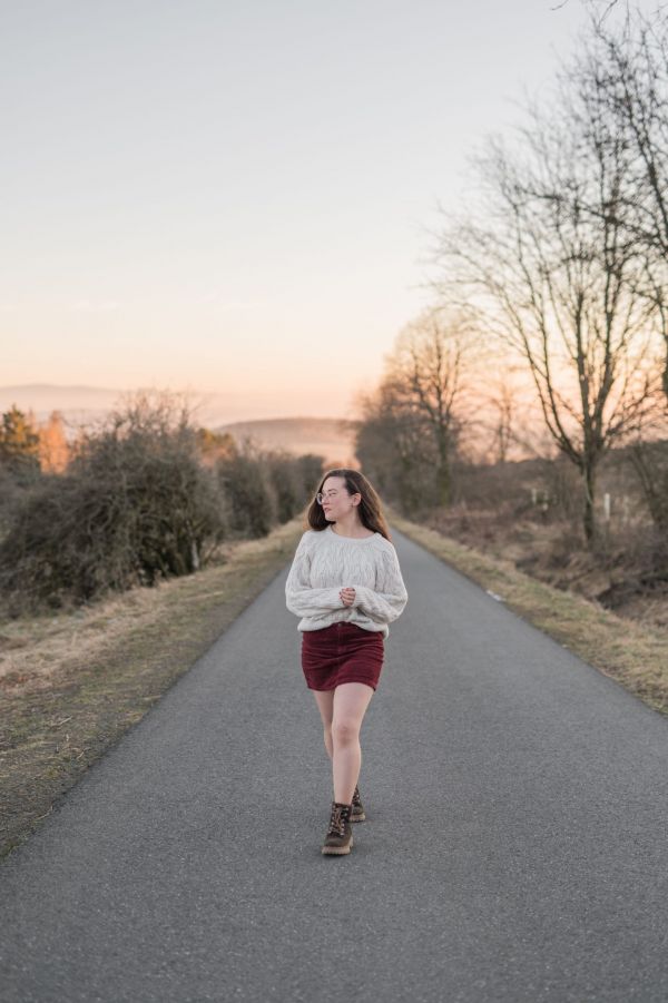 Livia was very spontaneous and wanted new pictures, so we decided to head to the edge of the forest to catch some golden light right before sunset. I’m in love with these brightly-lit treetops and the great view in the background!