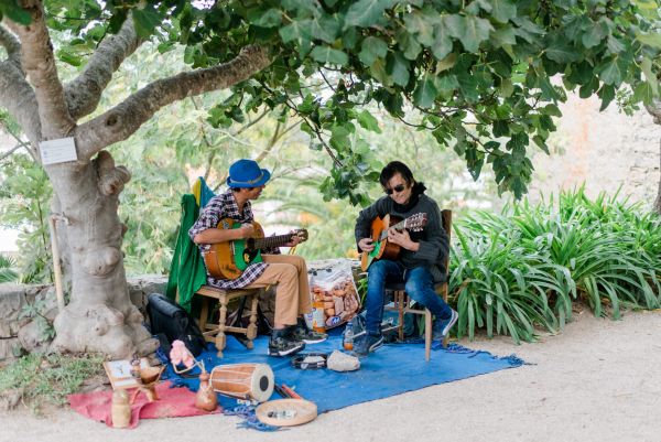 On the first day after arriving we decided to drive to Tavira, which is said to be one of the most beautiful cities in the Algarve. We had a lush breakfast among (beautifully!) run-down buildings, bright colours and bought some very delicious chocs before heading to the local castle. We climbed up the stairs to the fortress and when we started hearing a guitar playing and a guy singing. We listened to the song these two locals were playing and I was really touched by the song since the singer was singing about his mother and he even started crying. I just love when people put their heart and soul into their art and when they tell stories that really matter.