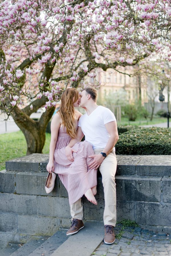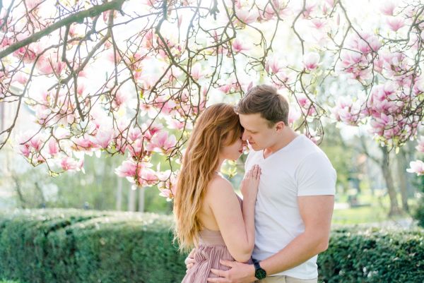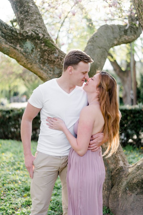 I couldn’t help it, I needed to capture this beauty immediately. So I started a very spontaneous couple search and Vanessa and Anton were the first to respond – I was very happy to meet them and to get to know them a little better in front of my camera, we had a great time, before the sun set behind the massive magnolia tree.